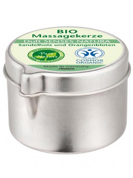 Vela ecológica confeccionada con aceite de Soja*, Coco*, Cera de Abeja y aceites esenciales 100% puros de Sándalo y flores de Naranjo.